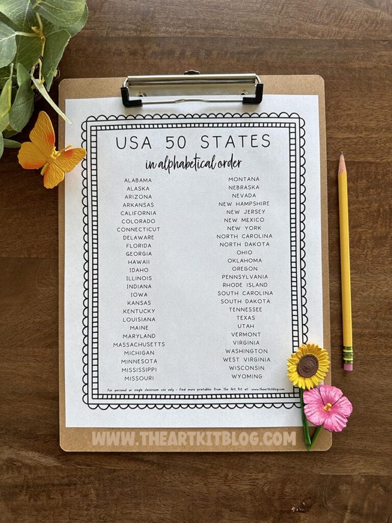 USA 50 States Alphabetical Order FREE Printable The Art Kit