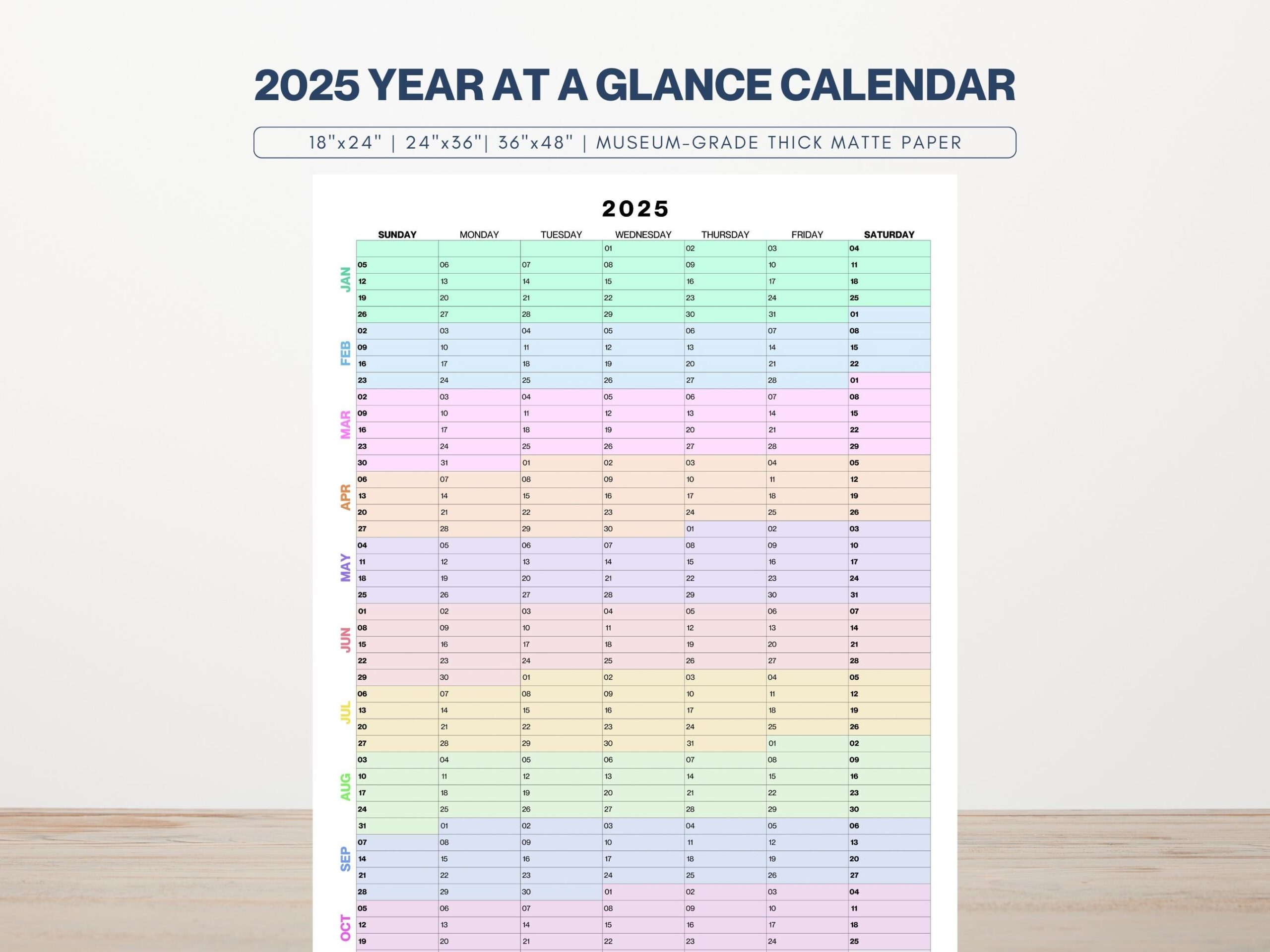 2025 Year At A Glance Calendar Large 2025 Wall Calendar 2025 Wall Planner Annual Organizer Continuous Monthly Calendar 12 Colors Etsy