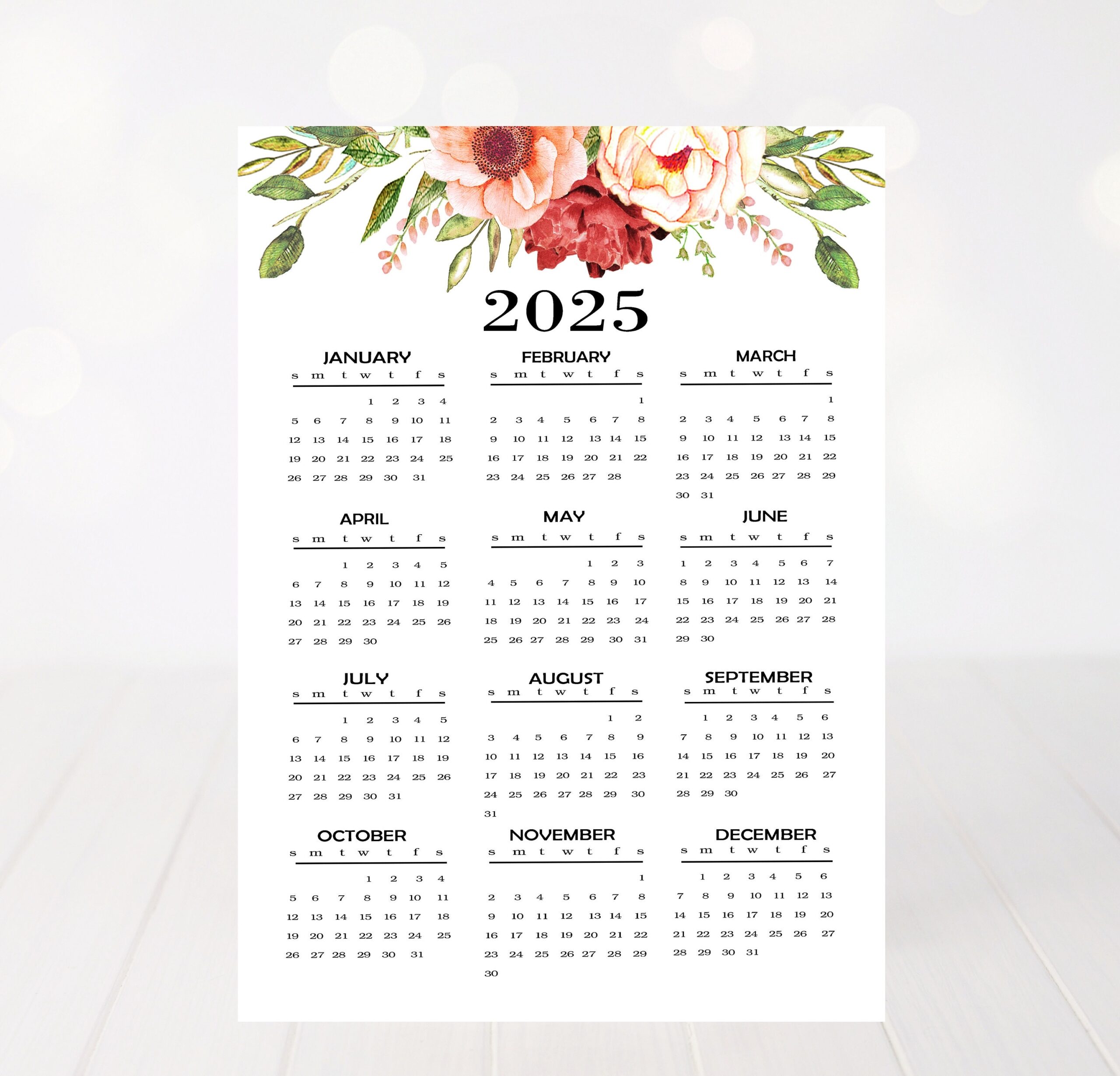 2025 Yearly Calendar 2025 Calendar Floral Calendar 2025 Calendar Full Page Printable Calendar Printable Calendar Yearly Calendar Etsy