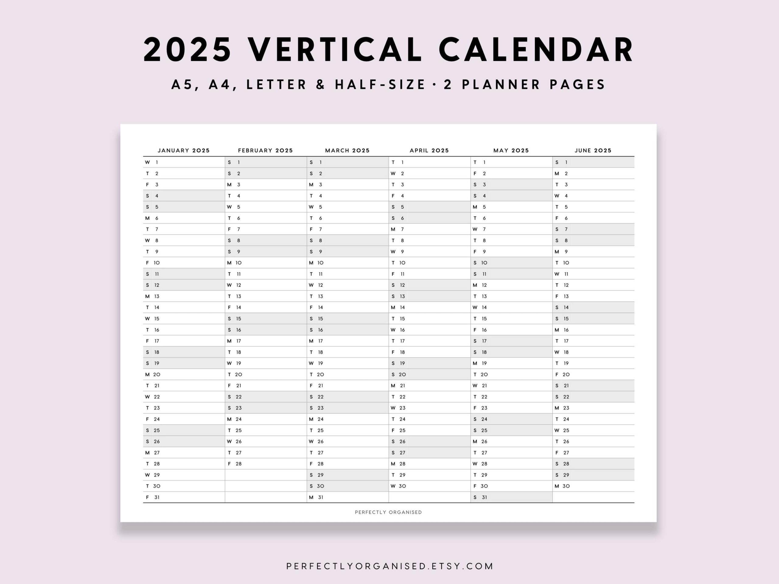 2025 Vertical Calendar 2025 Planner 2025 Foldout Vertical Calendar 2025 Overview Classic A5 Half size A4 Letter PRINTABLE Etsy