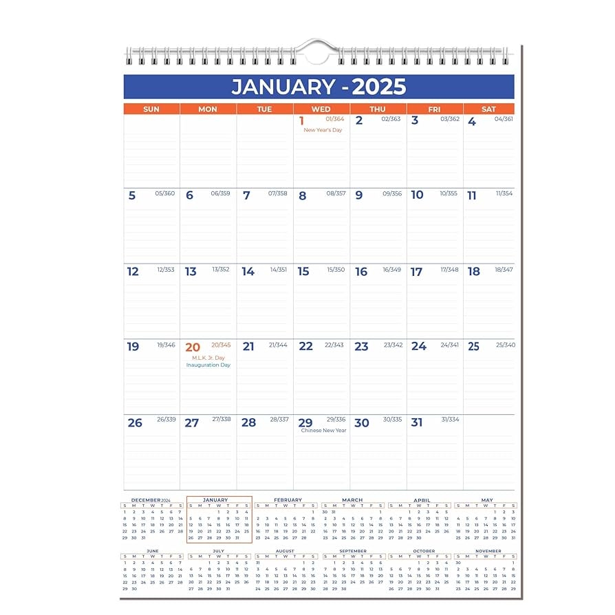 Amazon 2025 Wall Calendar January 2025 December 2025 12 Monthly Hanging Calendar 2025 Planner A4 Size 8 5 X 11 Spiral Binding Holidays Julian Dates Large Blocks Twin Wire Binding Hanging Hook 1 Pack Office Products