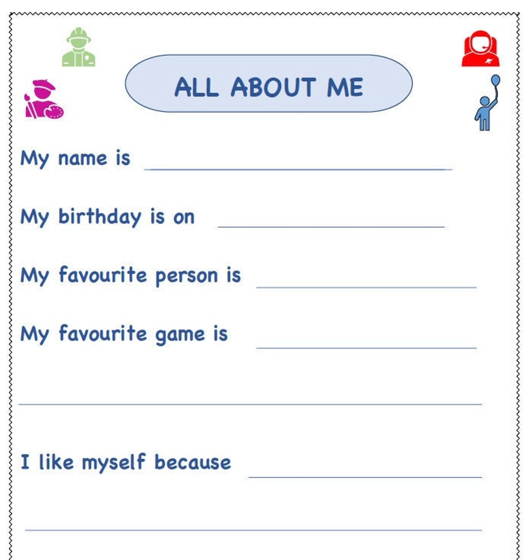 All About Me Kids Worksheet Etsy