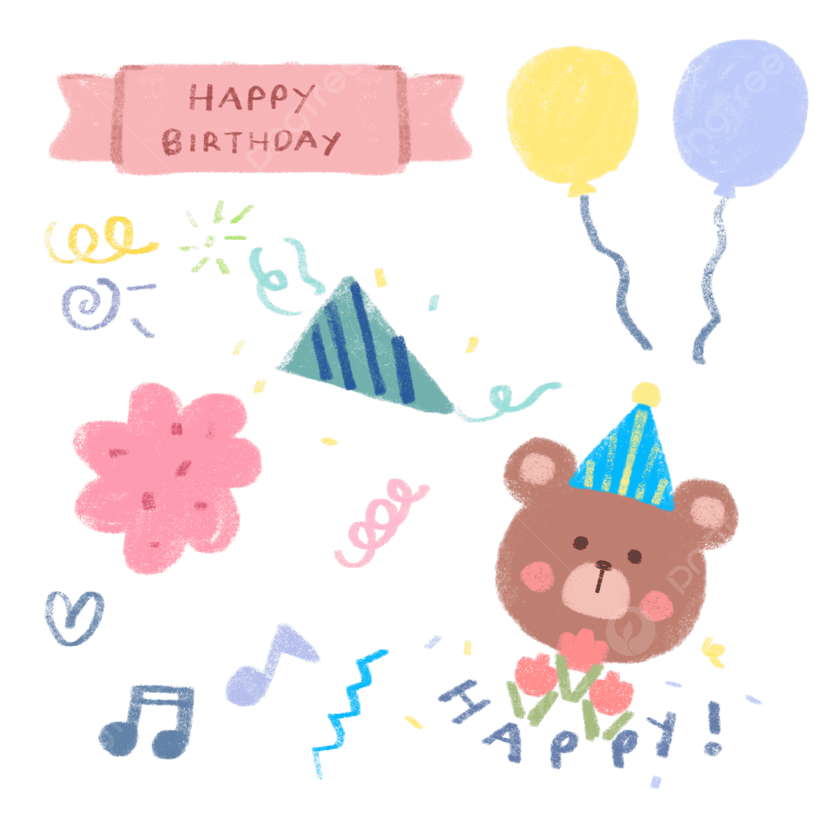 Happy Birthday Party Korean Bear Sticker Free Printable Birthday Clipart Bear Clipart Happy Clipart PNG Transparent Clipart Image And PSD File For Free Download