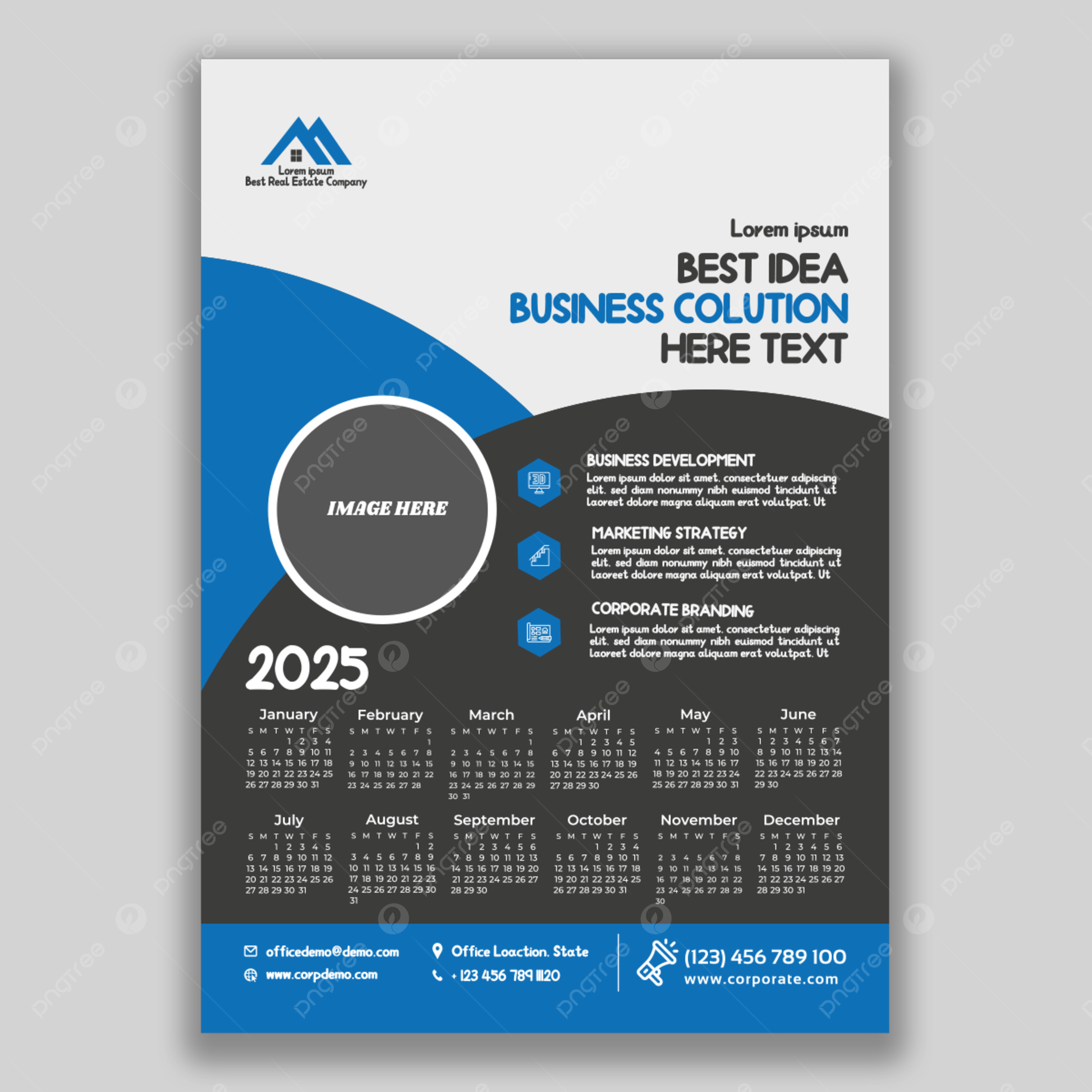 Corporate Company Wall Calendar 2025 Vector Template Download On Pngtree