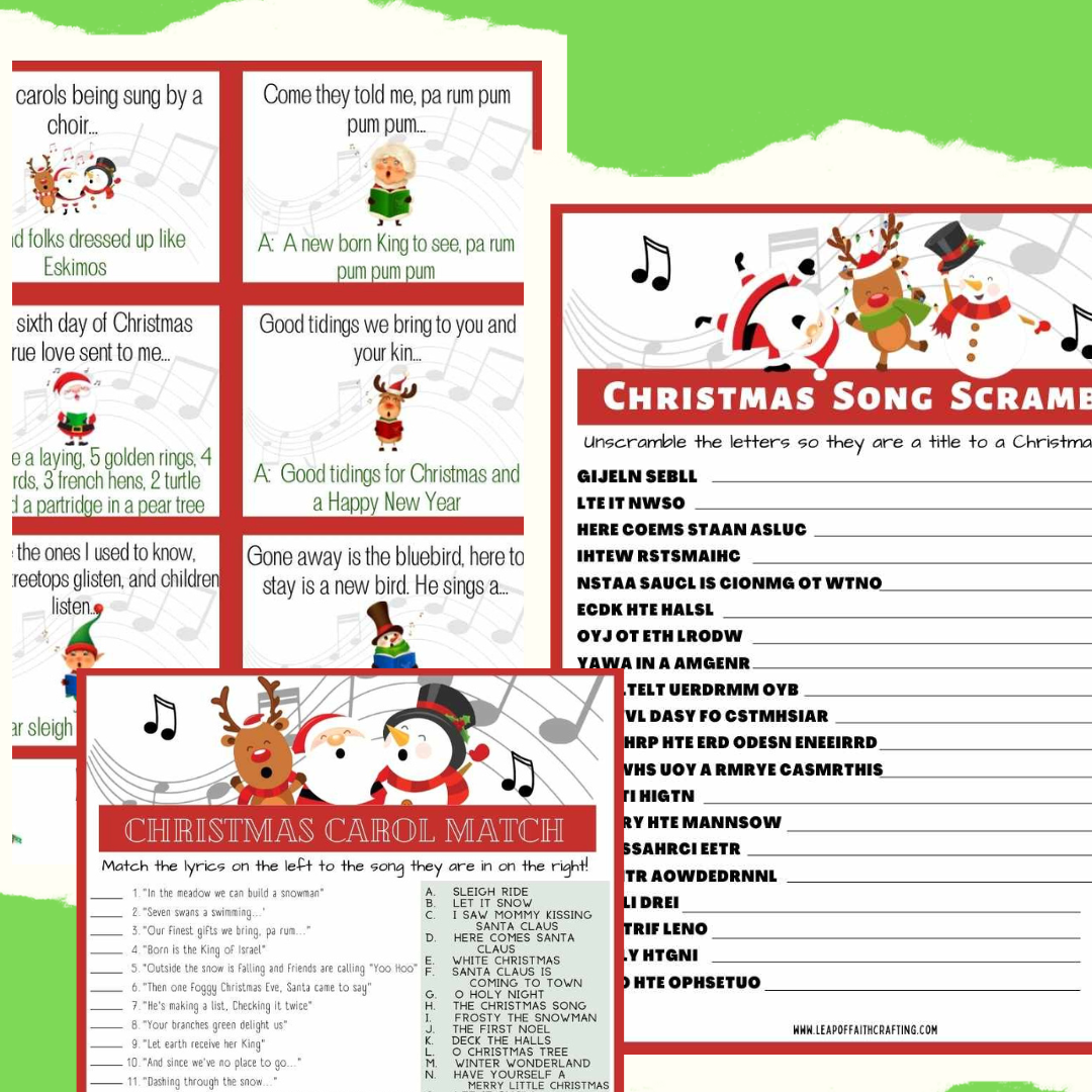 Christmas Song Games Printables 8 Pages For Hours Of Fun Leap Of Faith Crafting