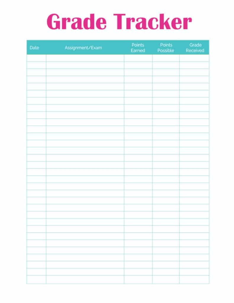 Grade Tracker Printable