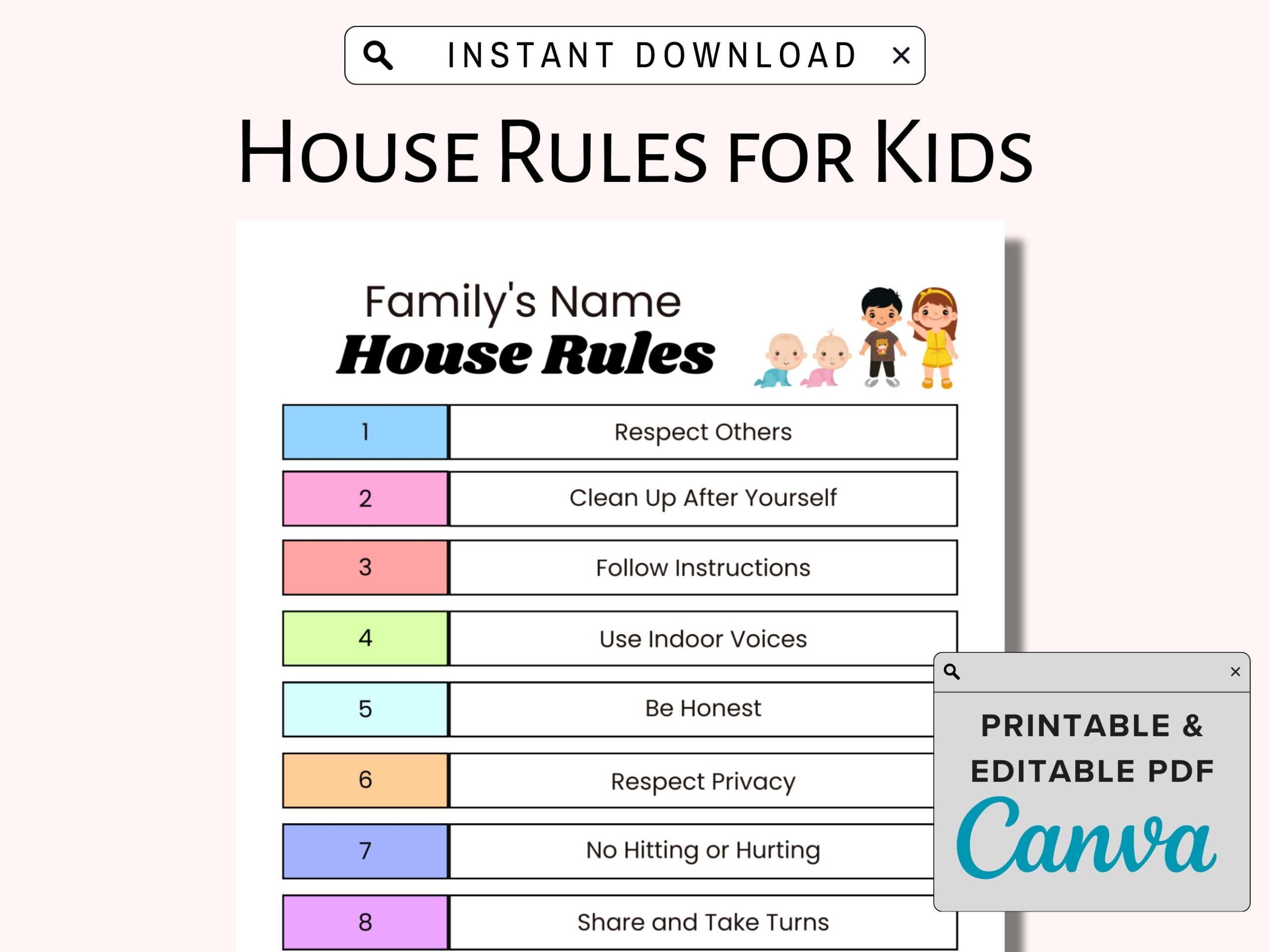 House Rules For Kids Printable Family House Rules Family Rules Home Values Short Kids Rules Home Rules Alone Rules behavior Rules PDF Etsy