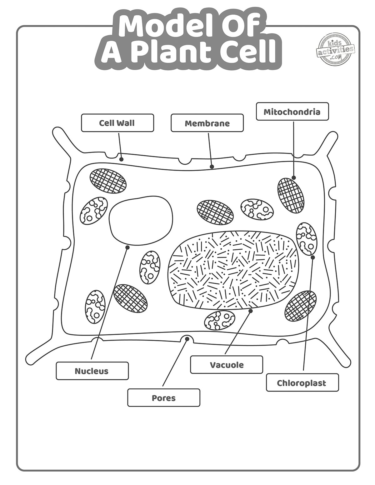 Plants VS Animal Cell Diagram Label Black White