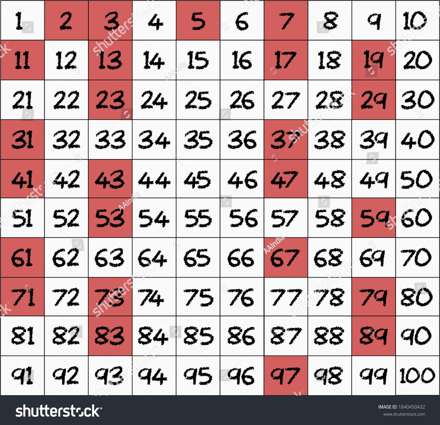 Number Chart Showing Prime Numbers 100 Stock Vector Royalty Free 1840450432 Shutterstock