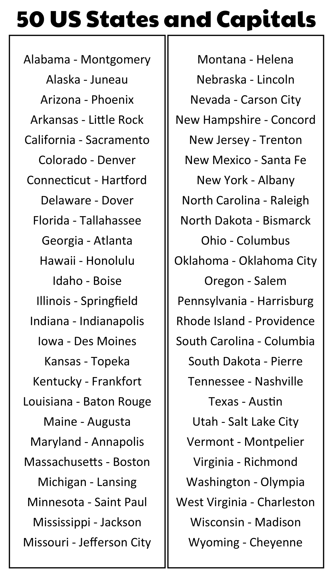 Are you looking for a printable list of United States and capitals? Look no further! We have compiled a handy guide for you to reference whenever you need it. Whether you’re a student studying geography or just curious about the US, this list will come in handy.