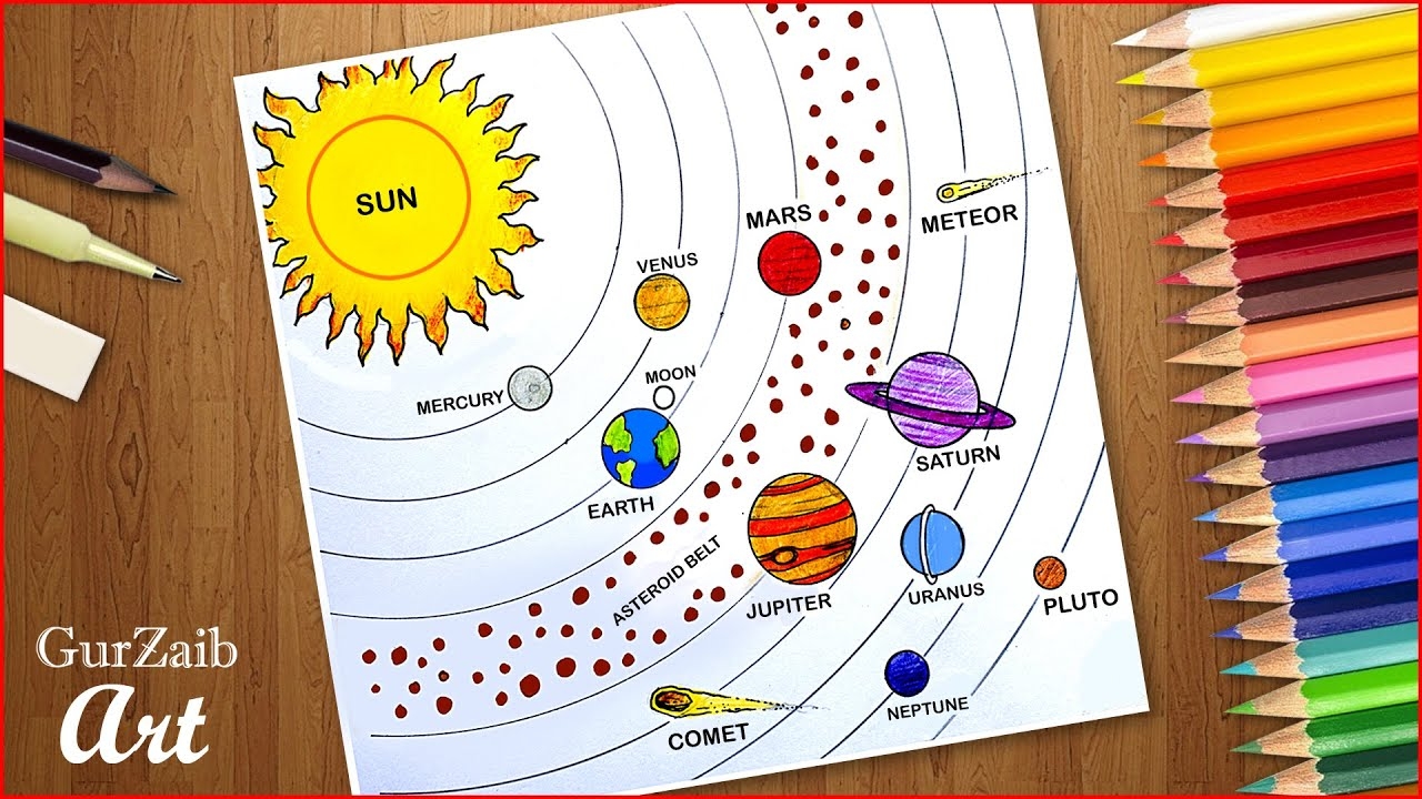 How To Draw Solar System Diagram Drawing Very Easy Way Step By Step YouTube