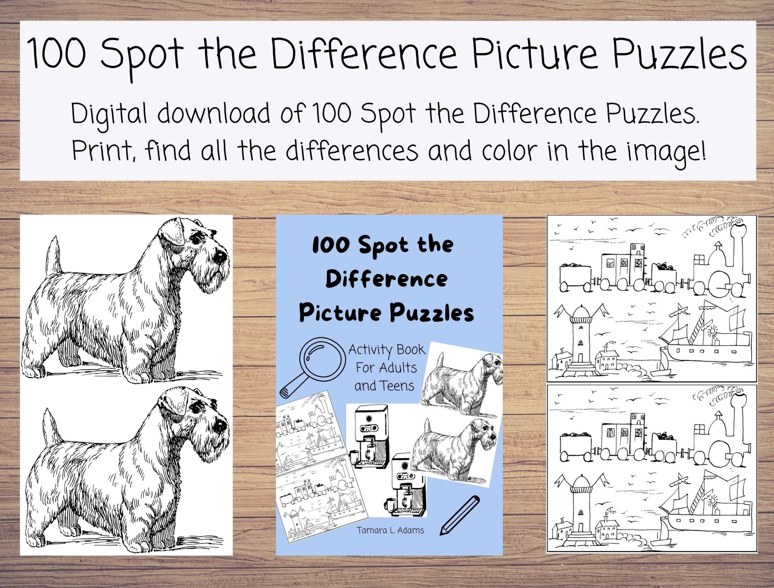 Printable 100 Spot The Difference Picture Puzzles Activity PDF Bundle For Adults And Teens Variety Of Images That Range From Easy To Hard Etsy