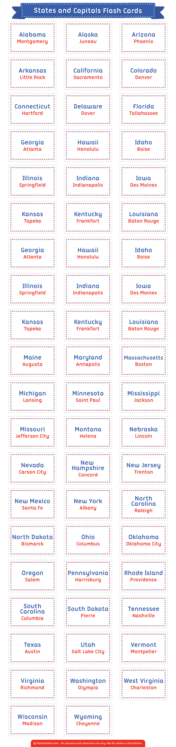 Are you looking for a fun way to learn the states and capitals of the United States? Look no further! With these printable flashcards, you can study and quiz yourself anytime, anywhere.