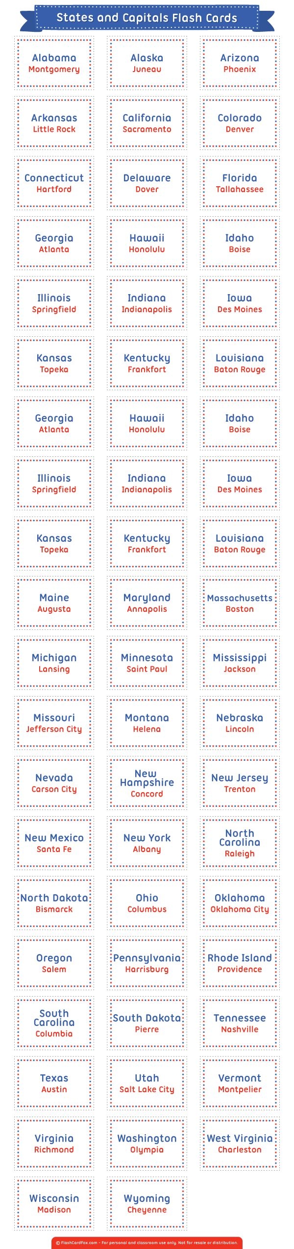 Learning can be enjoyable, and these flashcards make it easy to memorize the states and capitals while having a good time. Whether you’re a student, teacher, or just someone who loves geography, these flashcards are perfect for you.
